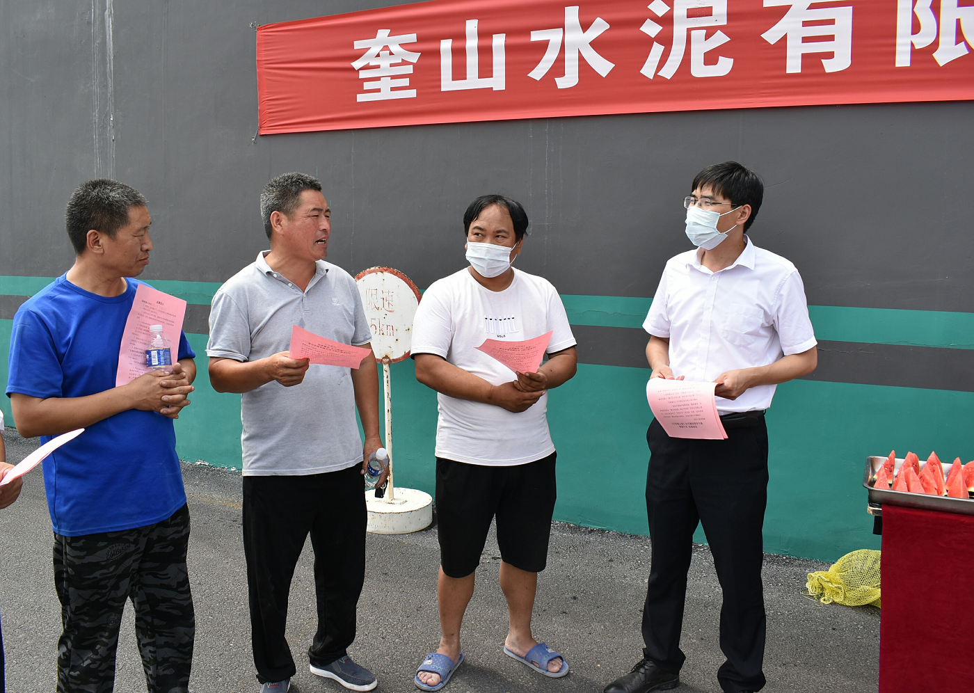 【概要描述】6月29日奎山水泥有限公司開展“客戶服務日”活動,活動主題為“微笑服務、從我做起”,活動內容包括:全員微笑服務、為客戶提供便捷服務、疑難解答、免費洗車、免費用餐、發放防暑用品等等。
